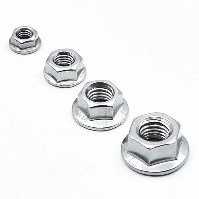 Неліктен таңдауфланецті бекітпе гайка? Фланецтердің қос функциясы бар: беттерді зақымданудан қорғау және үйкелісті арттыру арқылы қопсытуды болдырмау. Ешқандай қосымша бөлшектер қажет емес, егер ол кілтпен тартылса, ол қозғалтқыш немесе конвейер лентасы сияқты шайқау құрылғысындағы кәдімгі гайкаға қарағанда сенімдірек. Мырышпен қапталған болат сияқты материалдар тотқа төзімді, бұл оларды сыртта қолдануға өте ыңғайлы етеді.