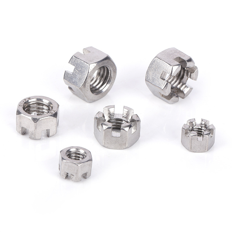 Жұмсақ болаттан жасалған алтыбұрышты саңылаулы құлып гайкаларына арналған қаптама қарапайым түрде сақталады. Шағын тапсырыстар алдымен мөлдір полиэтилен пакеттеріне, содан кейін картон қораптарға түседі. Сөмке ылғалды сақтайды, ал қорап стандартты тасымалдау үшін жеткілікті қорғанысты қамтамасыз етеді.